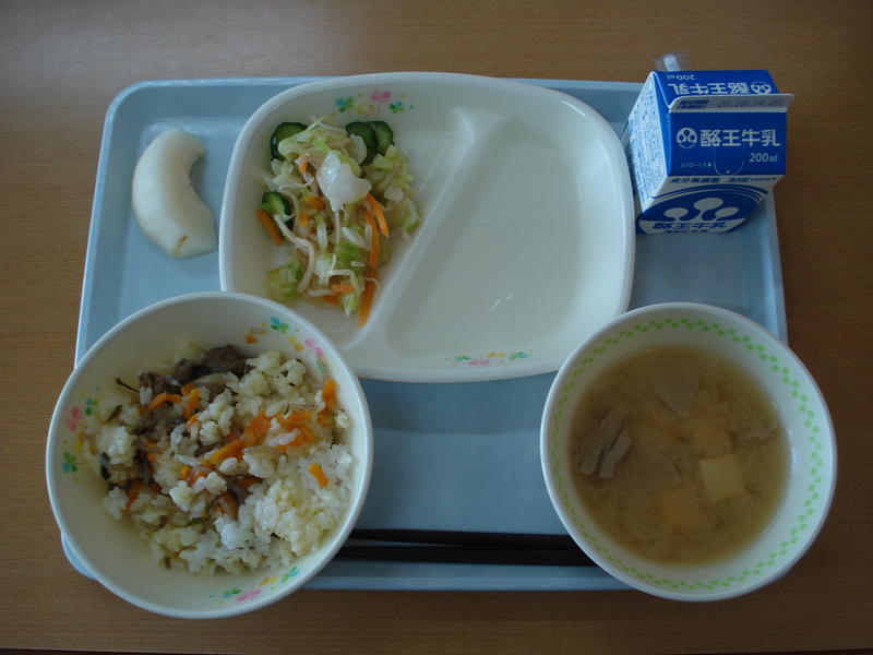 ごはん 牛乳 しめじの味噌汁 いそあえ