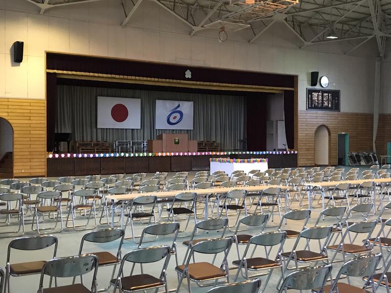 2年生がシート敷き、イス並べ、暗幕設置、掃除など頑張って会場作成をしてくれました。
