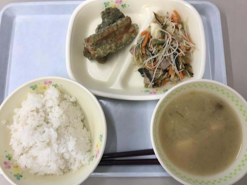 ごはん 牛乳 なめこの味噌汁 ちくわのいそべ揚げ 五目ビーフン