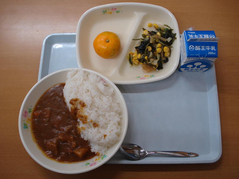 ポークカレーライス 牛乳 海藻サラダ みかん