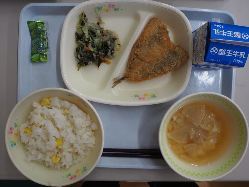 栗ごはん 牛乳 アジフライ 磯香あえ 大根みそ汁