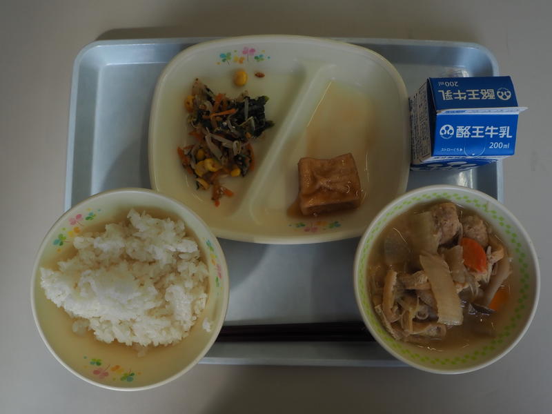 ごはん 牛乳 揚げ出し豆腐 いろどりあえ みそちゃんこ汁