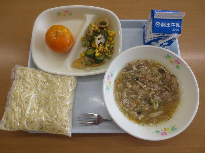 和風スパゲティ 牛乳 シャキシャキサラダ 冷凍みかん