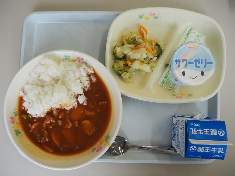 ハッシュドポーク 牛乳 ブロッコリーサラダ サワーゼリー