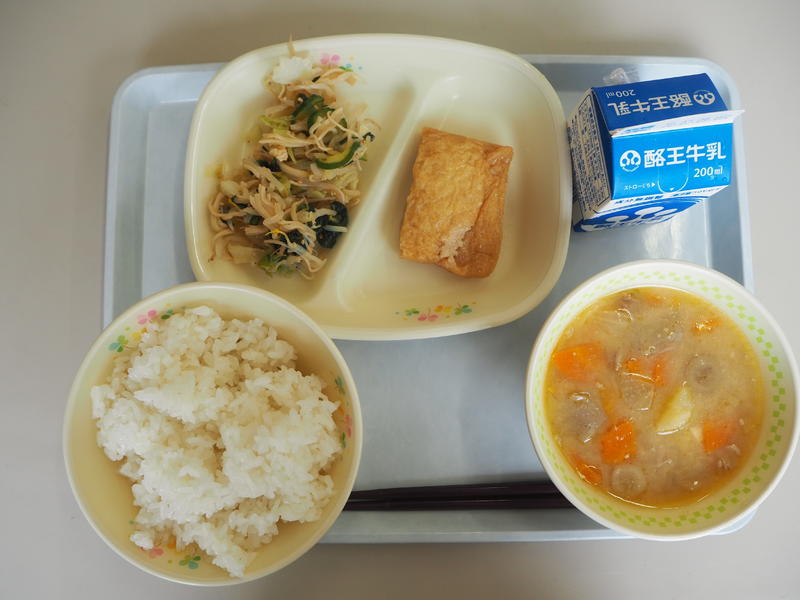 ごはん 牛乳 若竹信田煮 もやしの香味あえ 豚汁