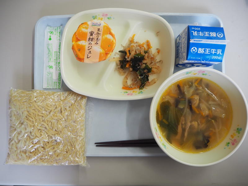 五目タンメン 牛乳 大根とジャコのサラダ みかんゼリー