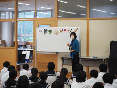 栄養教諭の先生にお越しいただき、「免疫力を高める献立」をテーマに子どもたちは自分で作るお弁当の