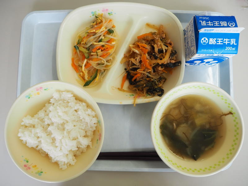 ごはん 牛乳 ビビンバの具 バンサンスー もずくスープ