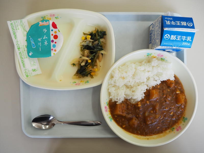 キーマカレーライス 牛乳 海藻サラダ 野菜果実ゼリー