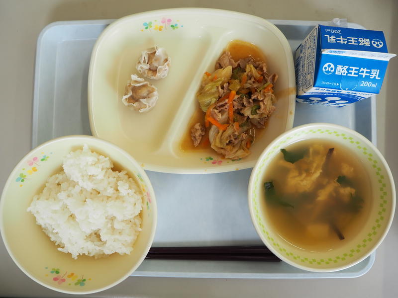 ごはん 牛乳 シューマイ ホイコーロー 中華スープ