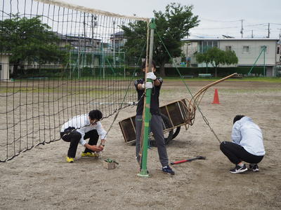 本日の朝より体育科の先生方がコート作成をしてくださいました。