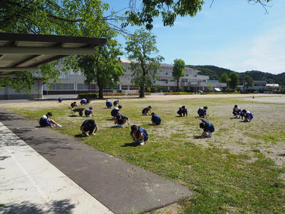 ここ最近は各部活動がグラウンド整備をかねて校庭の草むしりをしてくれています。