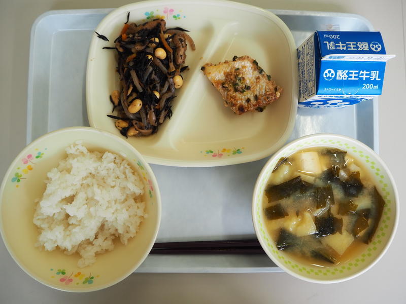 ごはん 牛乳 サケの三味焼き ひじき煮 じゃがいものみそ汁