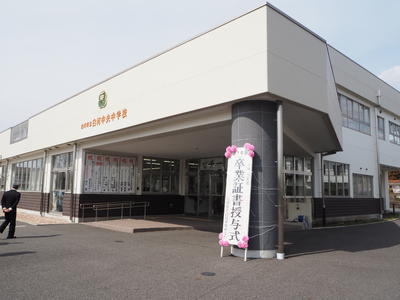 式歌は先日行われた予行での生徒合唱の録音と3年間を振り返るショートムービーに代えて行われ、生徒からは懐かしさにすすり泣く声と笑い声が聞こえてきました。
