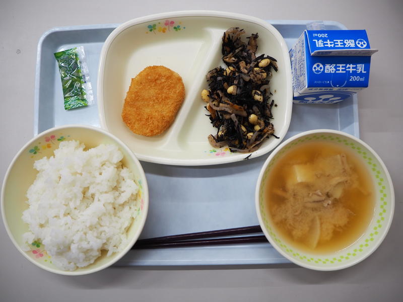 ごはん 牛乳 うの花コロッケ ひじきの炒め煮 大根のみそ汁