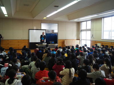はじめに全体会を行い、その後は授業見学や行事紹介のDVDを鑑賞しました。