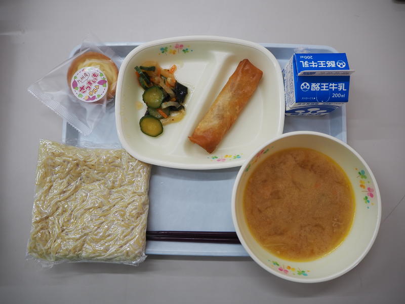 みそラーメン 牛乳 春巻き 大根サラダ さつまいもタルト