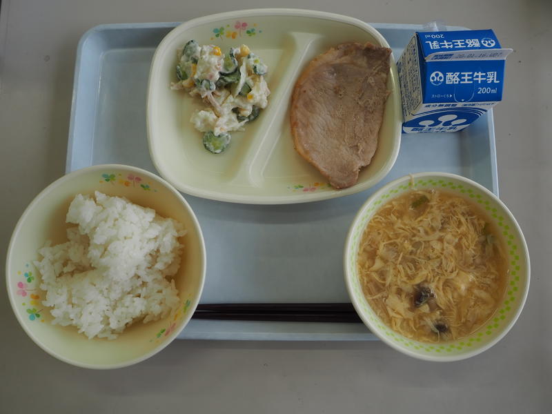ごはん 牛乳 豚肉のしょうが焼き ポテトサラダ かき玉汁