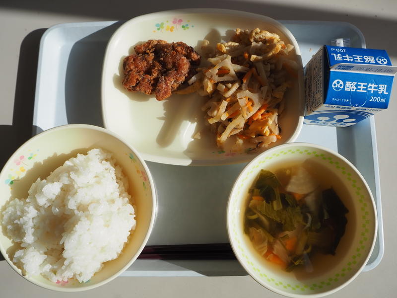 ごはん 牛乳 鶏の唐揚げ 炒めなます 七草汁