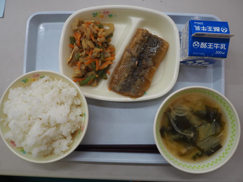 ごはん 牛乳 さんまの蒲焼き レンコンきんぴら 豆腐のみそ汁