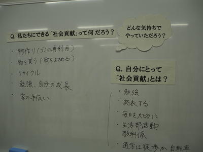 分かっていそうで難しいテーマの社会貢献について生徒達は様々な意見を発表していました。