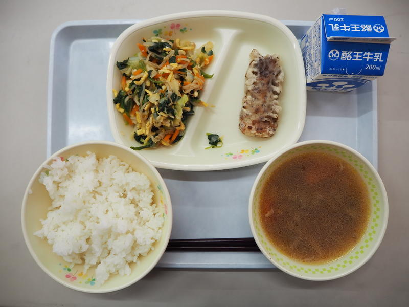 ごはん 牛乳 ちくわのゆかり揚げ ちぐさあえ 肉じゃが