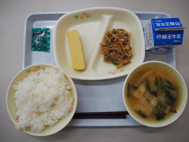 ごはん 牛乳 のり佃煮 厚焼き玉子 切り干し大根の炒め煮 小松菜のみそ汁