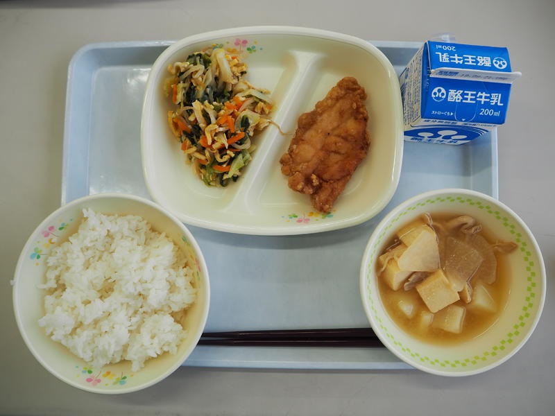ごはん 牛乳 鶏のからあげ 千草あえ 大根のみそ汁