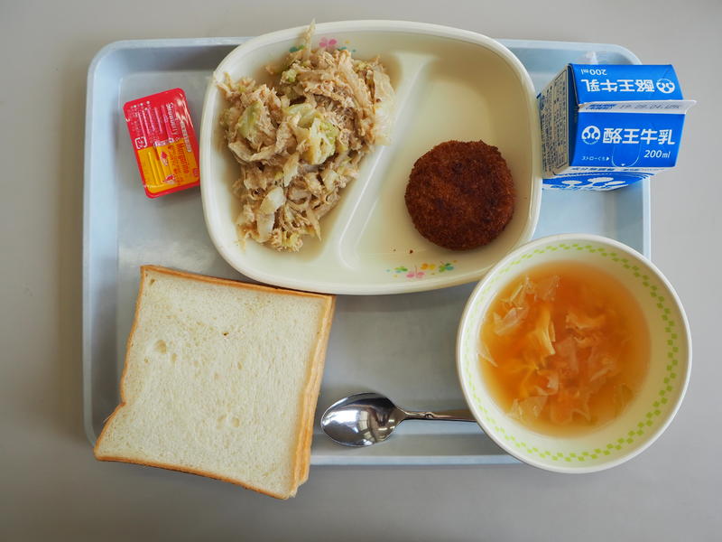 食パン 牛乳 いちご&マーガリン リッチなカレーコロッケ チキンサラダ トマトスープ