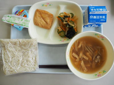 力もちうどん 牛乳 きゅうりサラダ 野菜果実ゼリー