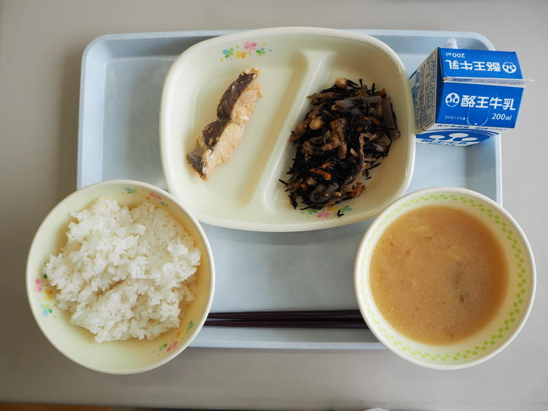 ごはん 牛乳 ホキの香味焼き ひじき煮 なめこ汁