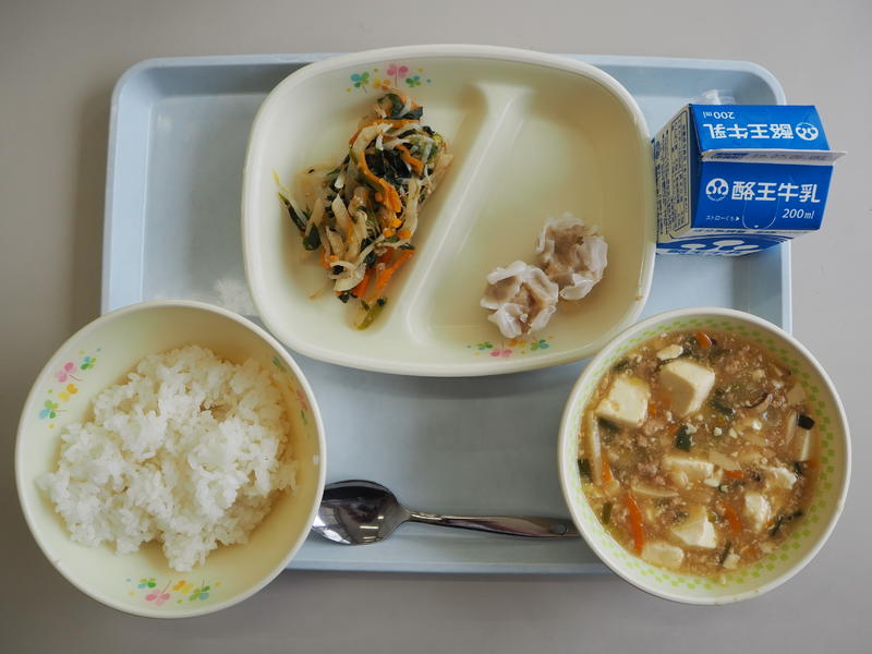 ごはん 牛乳 しゅうまい ナムル マーボー豆腐