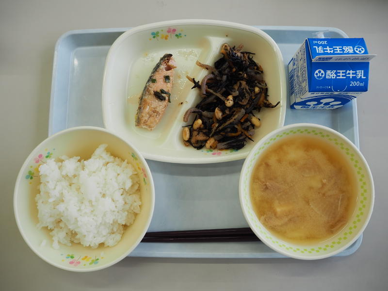 ごはん 牛乳 サケの三味焼き ひじき煮 大根のみそ汁