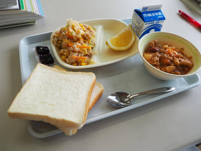 食パン 牛乳 ブルーベリージャム ツナサラダ ポークビーンズ 河内晩柑