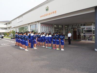 県中体連陸上競技大会に向けて陸上部が出発しました!