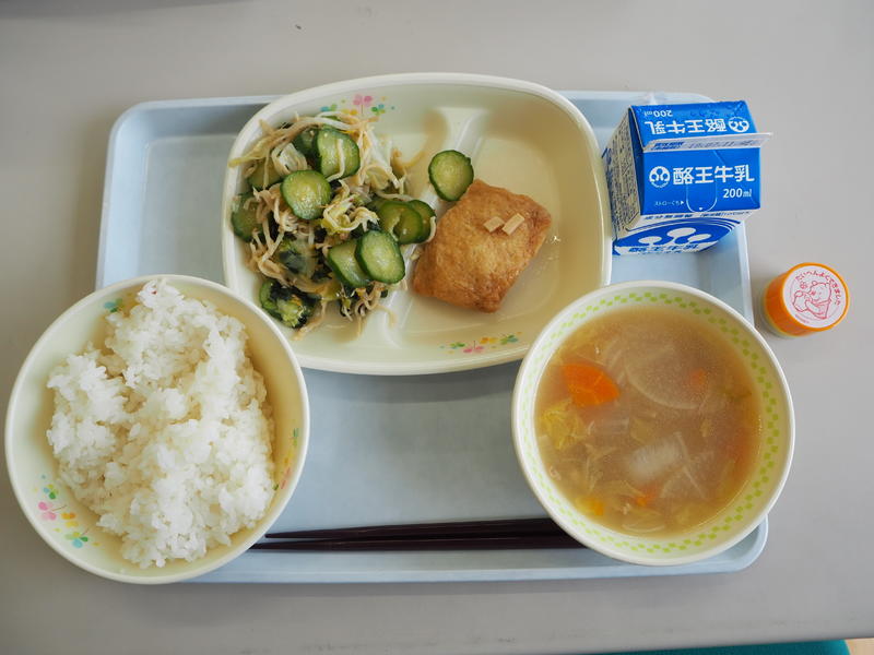ごはん 牛乳 若竹信田煮 もやしの香味和え いも団子汁