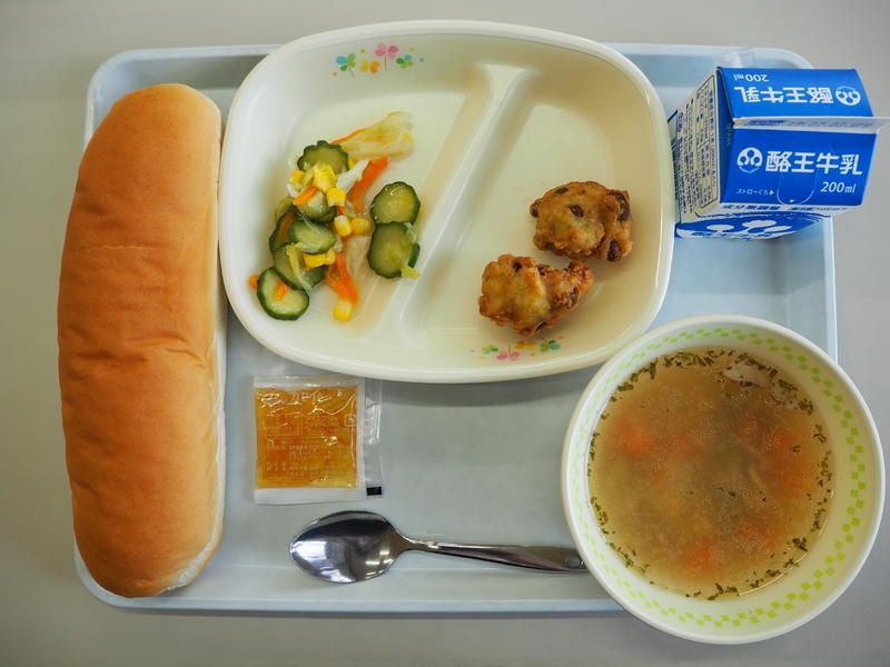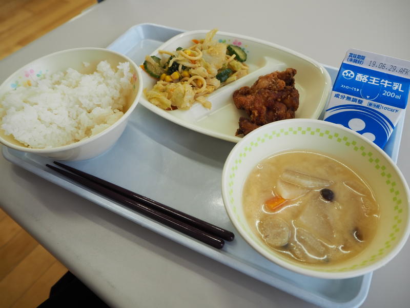 ごはん 牛乳 チキン竜田揚げ サラスパ 呉汁