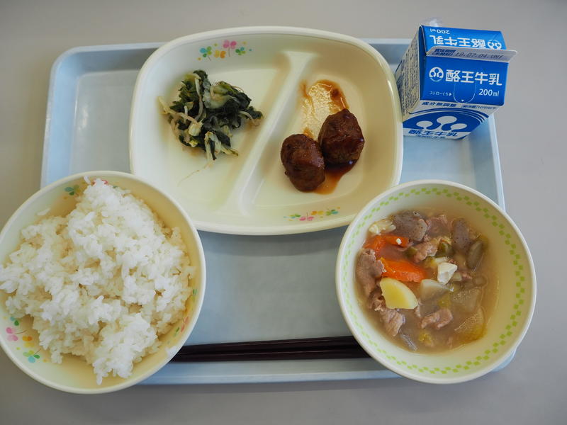 ごはん 牛乳 肉団子 キャベツのおかかあえ 豚汁
