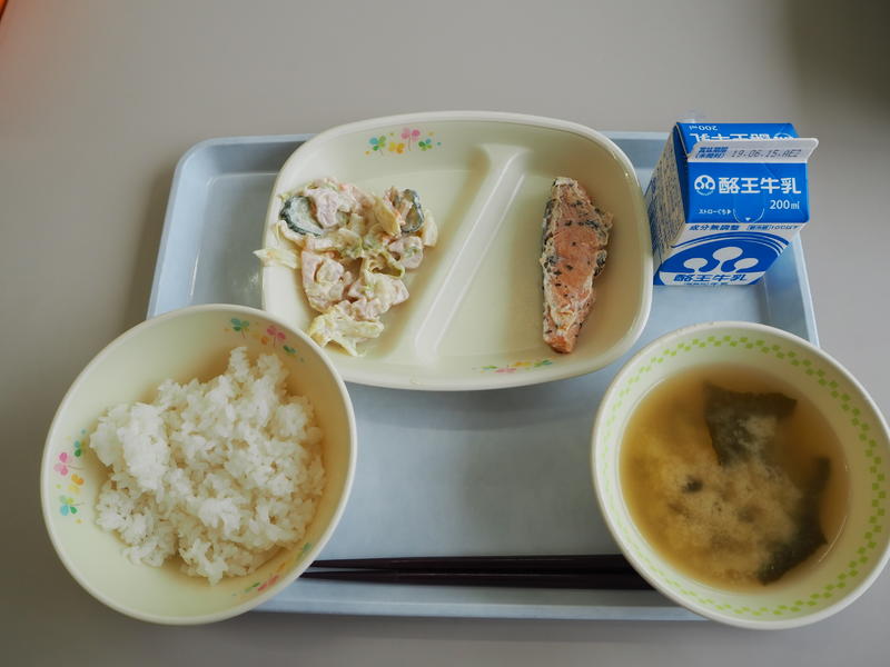 ごはん 牛乳 鮭のハーブ焼き れんこんサラダ 大根と厚揚げのみそ汁