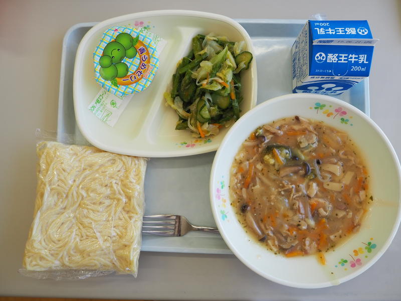 和風スパゲッティ 牛乳 アスパラサラダ 梅ゼリー