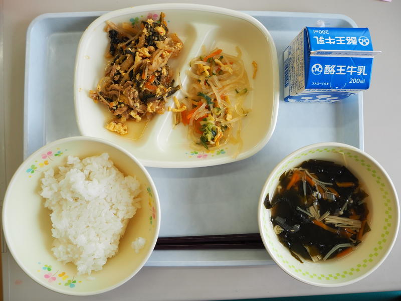 ごはん 牛乳 ビビンバ具 バンサンスー わかめスープ