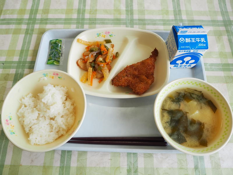 ごはん 牛乳 アジフライ 大根のきんぴら 青菜のみそ汁