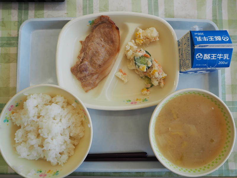 ごはん 牛乳 豚肉のしょうが焼き ポテトサラダ なめこ汁