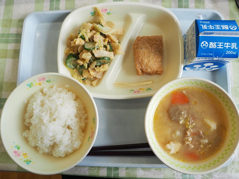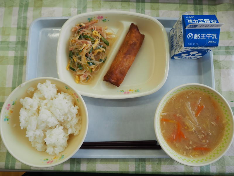 ごはん 牛乳 春巻き バンサンスー 肉みそスープ