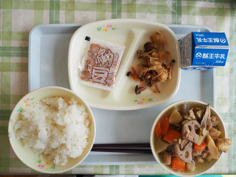 ごはん 牛乳 納豆しょうゆ味 白菜ときのこのおかかあえ いりどり