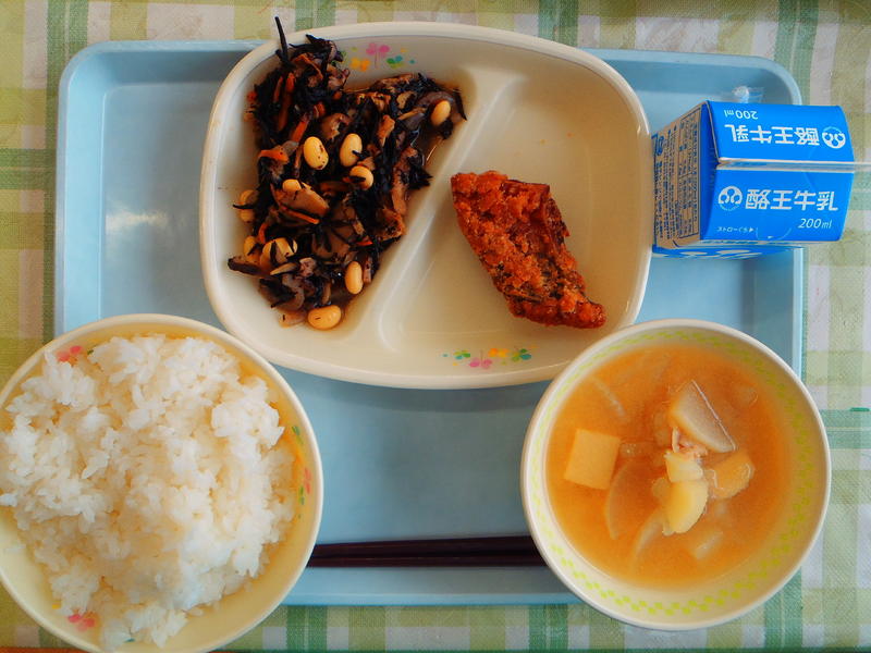ごはん 牛乳 サバの竜田揚げ ひじき煮 大根のみそ汁