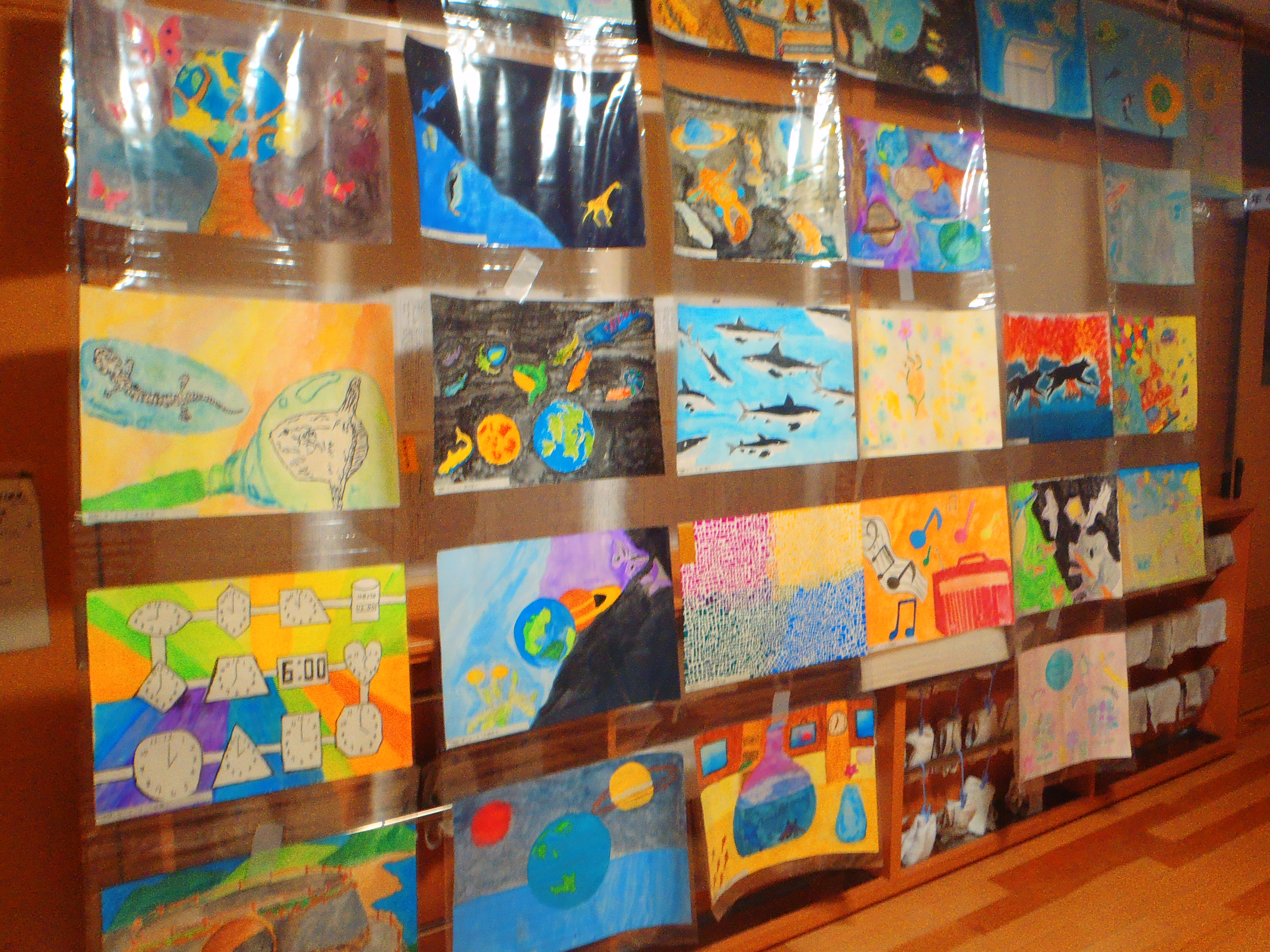 先週より各クラスの廊下掲示板に生徒の美術作品が展示されています。