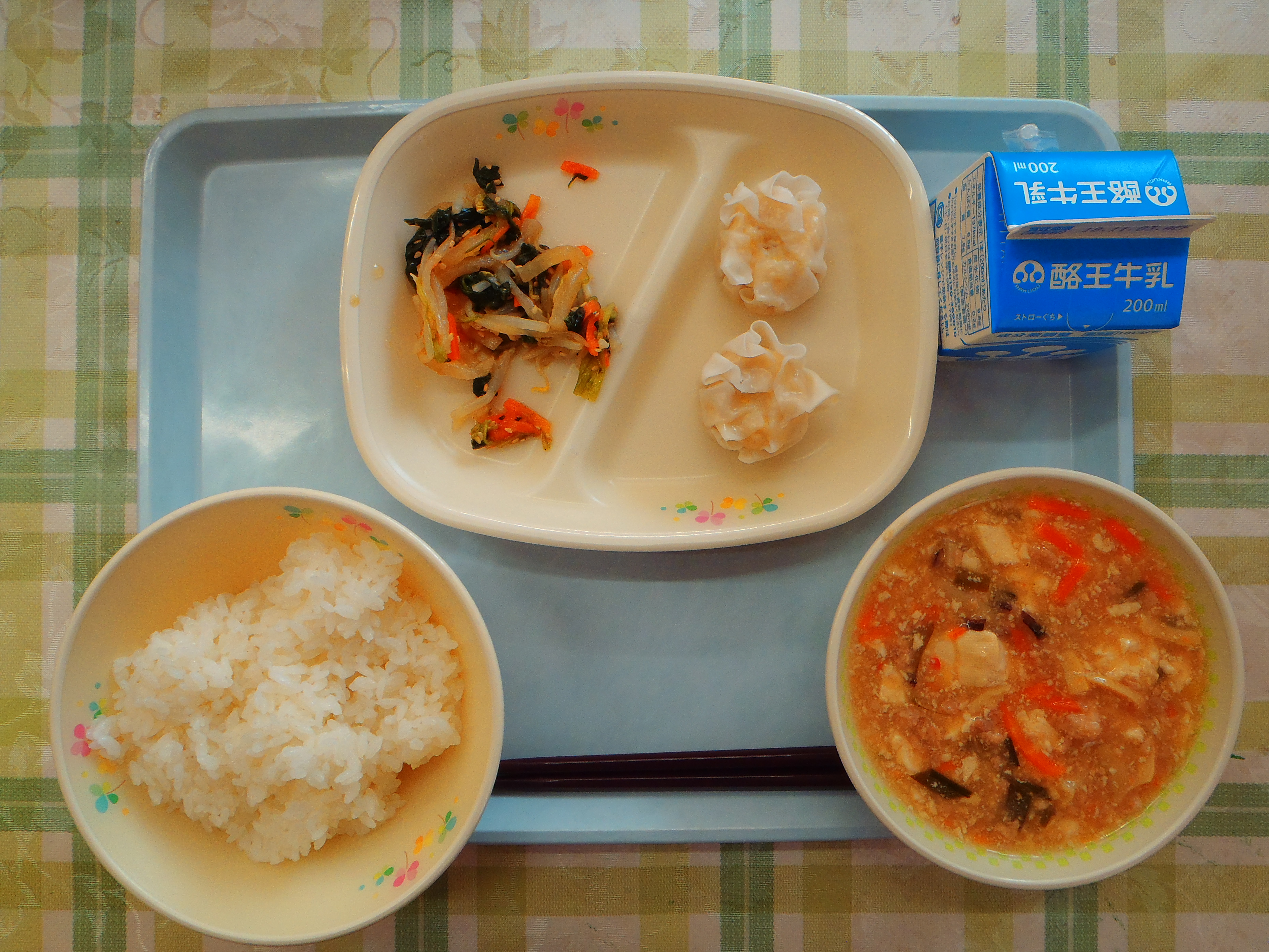 ごはん マーボー豆腐 ナムル コーンシューマイ 牛乳