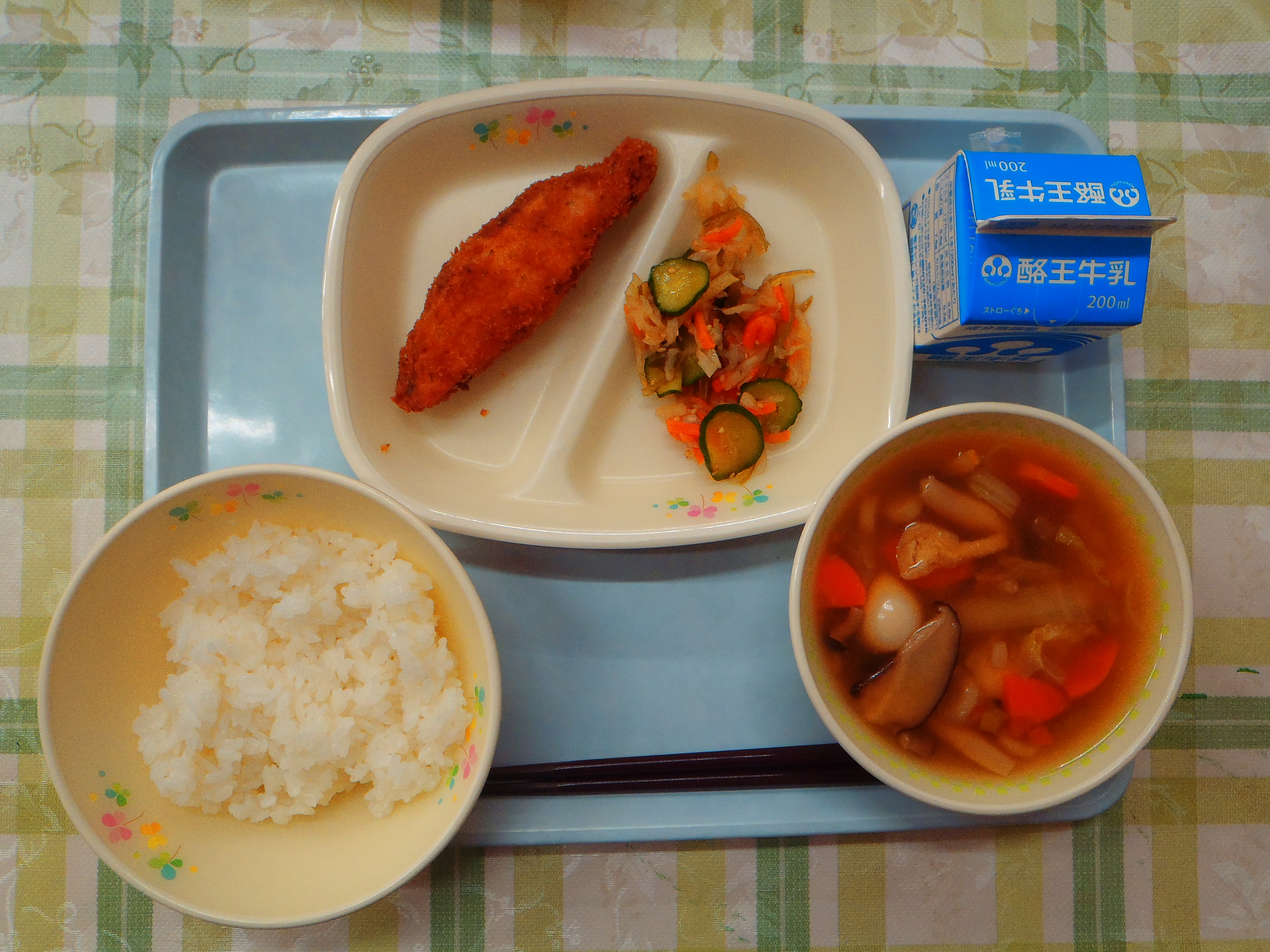 ごはん 田舎汁 ホキ磯辺フライ 切り干し大根はりはり漬け 牛乳