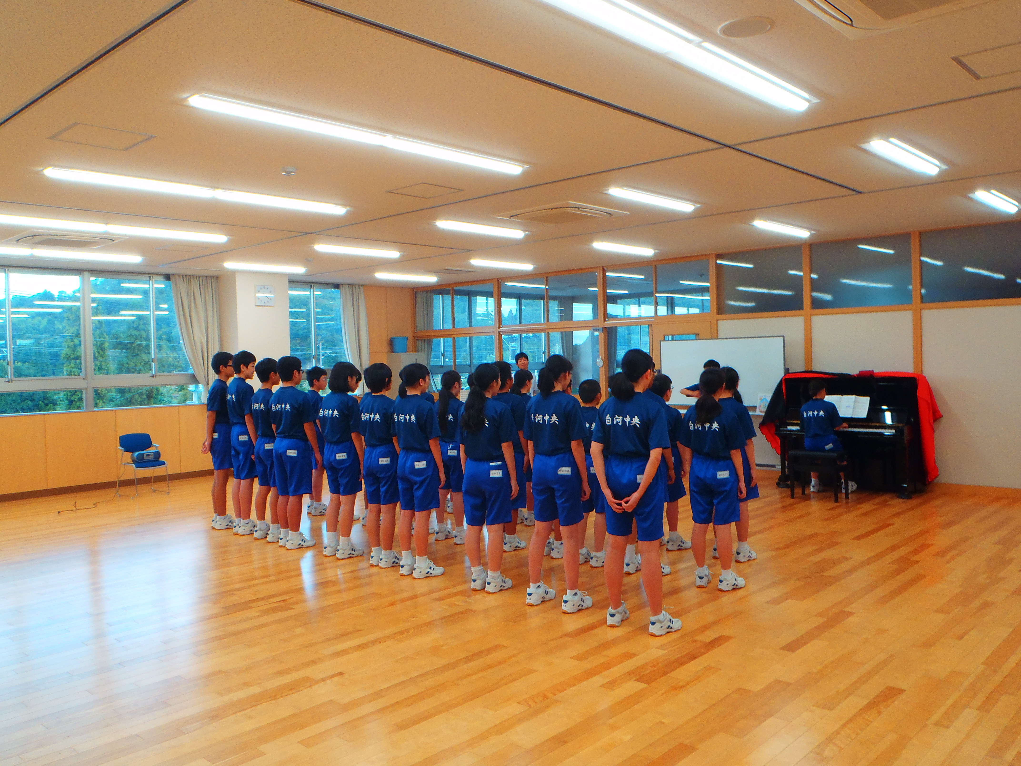 割り当てに従って、ホール練習をするクラス、教室練習をするクラスに分かれていました。